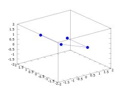 We show how to draw a system of points in 3D. The objective is to represent a rigid body as a system of [math] N [/math] mass particles in such a way that the relative position of the points is fixed. We start with the simplest example, the four corners in a square. We follow the steps:
