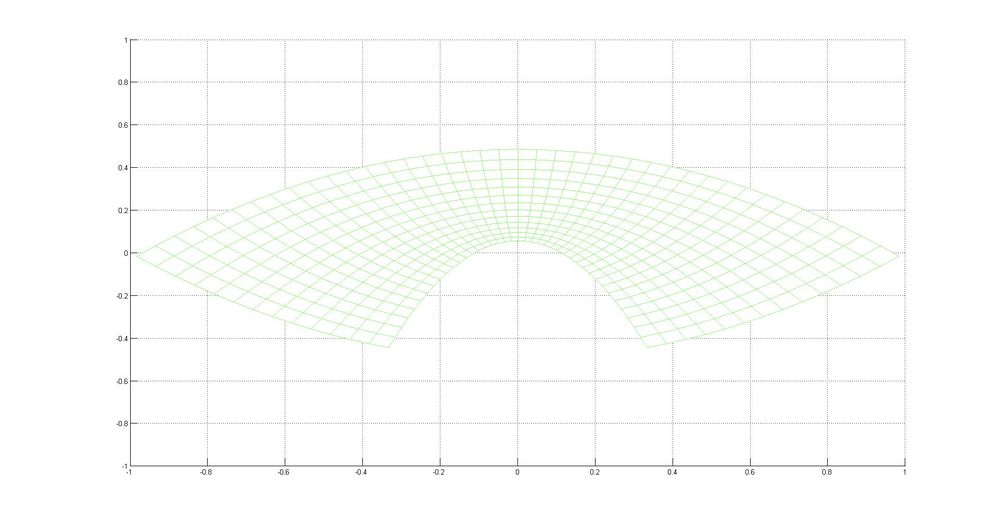 Primero comenzaremos el estudio de la placa en cuestión planteando su representación gráfica mediante un mallado, utilizando, en el código, la conversión a coordenadas curvilíneas de [math]u[/math] y [math]v[/math]. El intervalo en el que representaremos comprende::