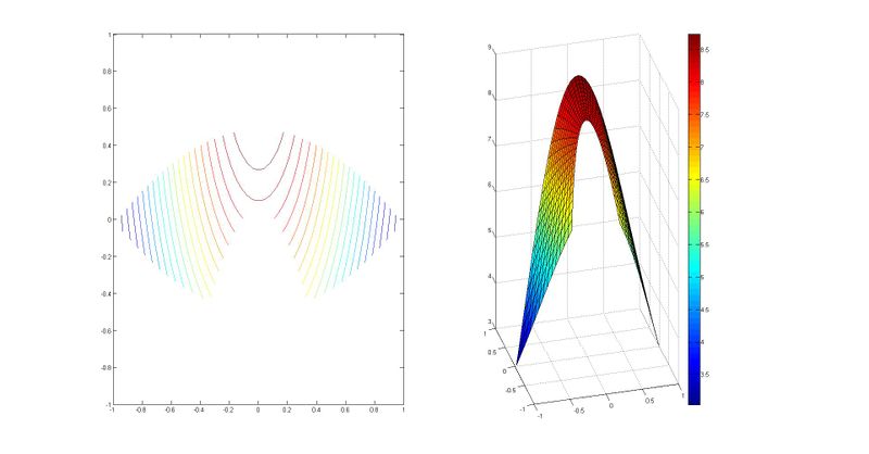 f=(8-yy.^2+yy.*2).*exp(-(xx.^2)); % Función Temperatura.