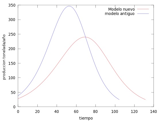 La producción máxima obtenida es de 239.9993 toneladas, en un tiempo t=131.4167 años. La cantidad de mineral sin extraer es de 288.8542 toneladas. Viendo los resultados, con sus errores, podemos concluir que el modelo de Gompertz se ajusta más a la realidad.