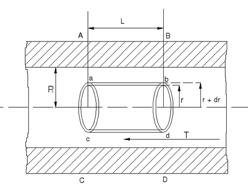 En nuestro caso, [math]\vec{u}(\rho,\theta,z)=f(\rho)\vec{e_z}[/math] es el campo vectorial velocidad , [math]\ p(x,y,z)=p_1+(p_2-p_1)(z-1)[/math] es el campo de presiones del fluido y [math]μ[/math] es la viscosidad del fluido.