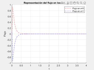 legend('Flujo en x=0', 'Flujo en x=1')