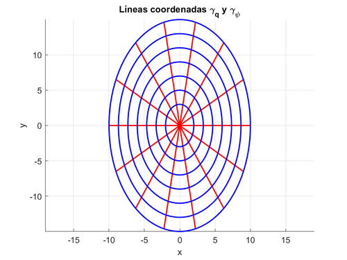 Parametrizaciones de las líneas coordenadas \(\gamma_q\), \(\gamma_\psi\) y \(\gamma_z\)