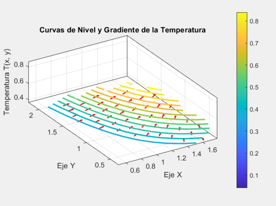 La siguiente grafica representa las curvas de nivel de la temperatura.