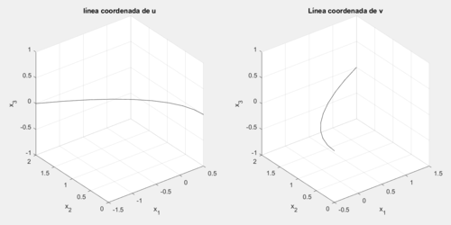 Las líneas coordenadas asociadas a \(u\) y a \(v\) son curvas que tienen forma de parábolas parametrizadas por (\(u\),\(v\)) | Las líneas coordenadas asociadas a \(u\) y a \(v\) son curvas que tienen forma de parábolas parametrizadas por (\(u\),\(v\)) | ||