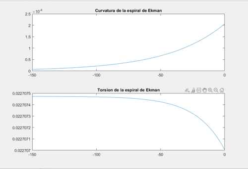 10 Cálculo de la curvatura y torsión de la espiral de Ekman