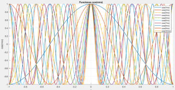 Para entender mejor esta base, representamos gráficamente en el intervalo [math][-1,1][/math] los 10 primeros términos tomando [math]a=-1,b=1[/math]. En este caso, la base se expresa como: