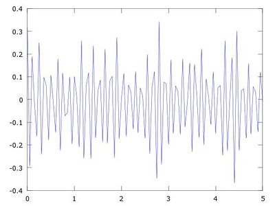 :[[Archivo:Apartado78.jpg|thumb|center|400px|Comportamiento de y(x,t) en el punto x=0.5 en un intervalo de tiempo [0,5].]]