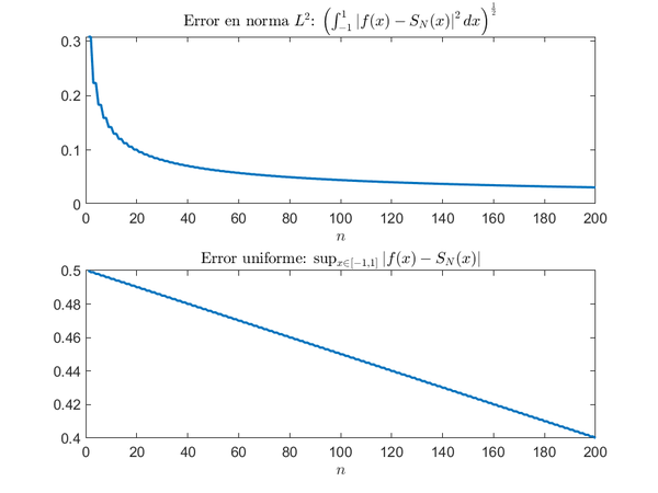 '''IMPORTANTE CAMBIAR LAS GRÁFICAS DEL ERROR (FINAL DE ESTE APARTADO) A LAS DEL ERROR DE LAS SUMAS DE CESARO, NO DE LA DE FOURIER'''