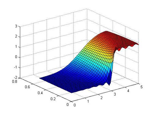 surf(xx,tt,sol);3.1.3 Resolución por método de Euler implícito