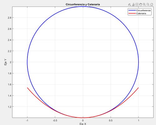 % Dibujar la circunferencia y la catenaria en la misma gráfica