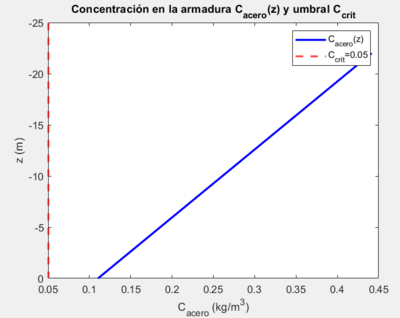 %% (d) C_acero(z) y comparación con Ccrit | %% (d) C_acero(z) y comparación con Ccrit | ||