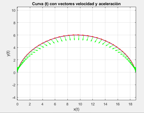 % Grafica de los vectores velocidad y aceleración