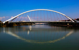 1.2. Arcos parabólicos. Algunos puentes utilizan arcos con forma parabólica para sostener el tablero. Esta geometría mejora la estabilidad de la estructura y permite disminuir tanto el peso total como la cantidad de material requerido para su construcción. Un ejemplo destacado es el Puente de la Barqueta.