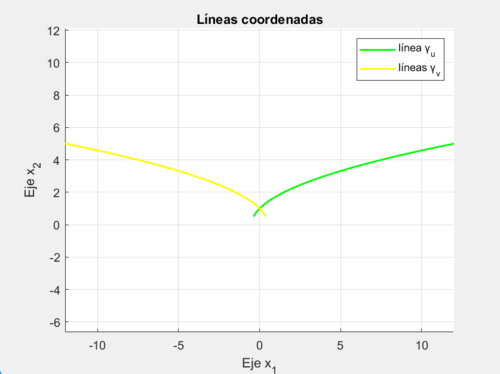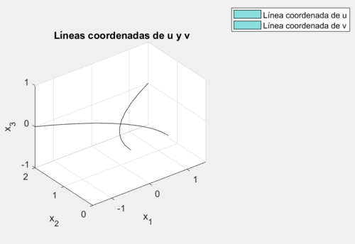 legend('Línea coordenada de u', 'Línea coordenada de v');