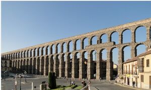 3.2. Acueductos históricos. El ejemplo más icónico de los acueductos son los construidos por los romanos, que mediante formas parabólicas maximizaban la estabilidad y transportaban agua a largas distancias. Por ejemplo tenemos muy cerca el Acueducto Romano de Segovia que data del siglo II d.C.