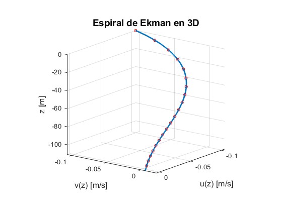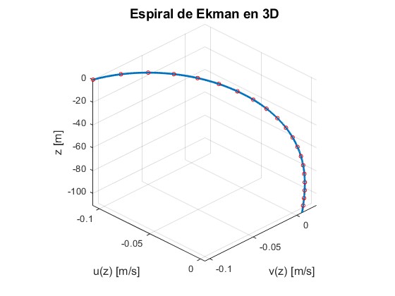title('Espiral de Ekman en 3D', 'FontSize', 14);