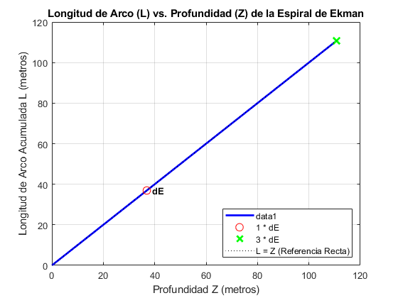 title('Longitud de Arco (L) vs. Profundidad (Z) de la Espiral de Ekman');