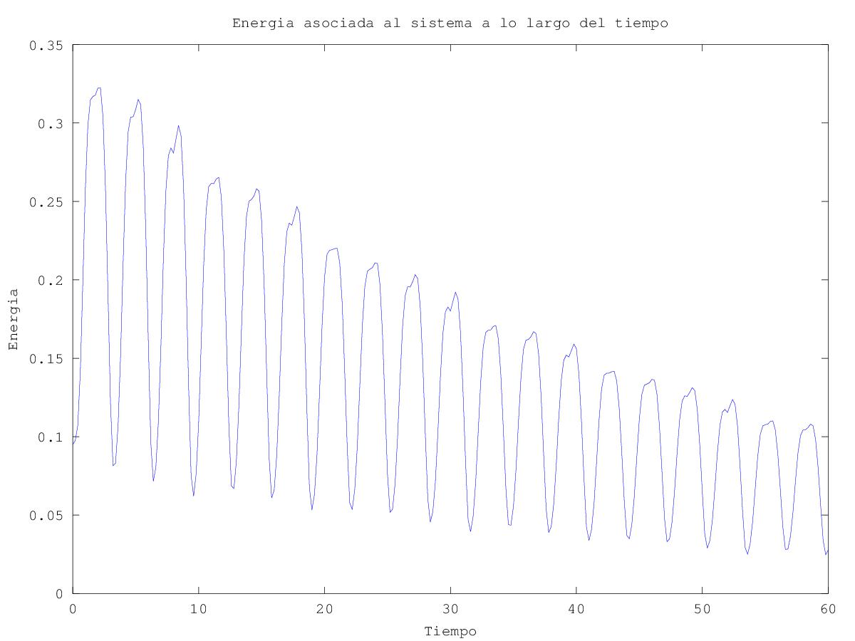 En la siguiente gráfica se observa la influencia del incremento de μ en la variación de energía en función del tiempo. Al aumentar μ de 1 a 3 se observa cómo decrece más rápidamente, y cuanto mayor sea el valor de μ, más decaimiento de la energía se produce.