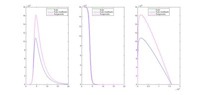 legend('Euler','Euler modificado','Runge-kutta','location','best') | legend('Euler','Euler modificado','Runge-kutta','location','best') | ||