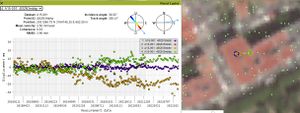 En la Figura 6 se muestra uno de los edificios con mayor desviación típica. Acudiendo al EGMS, consultando los datos del A15 y D16, se puede apreciar como puntos muy cercanos entre sí tienen tendencias muy diferentes. Otros edificios con desviaciones típicas elevadas son los representados en las Figura 7. Algunas de las cubiertas de estos edificios son metálicas, otras tienen equipos de aire acondicionado, e incluso las hay sin nada reseñable.