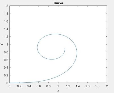 [math] \kappa (t)=\frac{cos(\frac{t^2}{2})\cdot t\cdot cos(\frac{t^2}{2})-(-t\cdot sin(\frac{t^2}{2})\cdot sin(\frac{t^2}{2}))}{\sqrt{[(cos(\frac{t^2}{2}))^2+(sin(\frac{t^2}{2}))^2]^3}}=\frac{t}{1}=t [/math] con t∈(0,4)