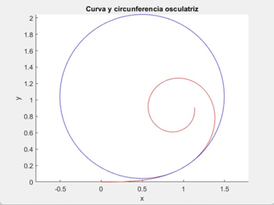 %Por último dibujamos la curva junto a la circunferencia osculatriz: