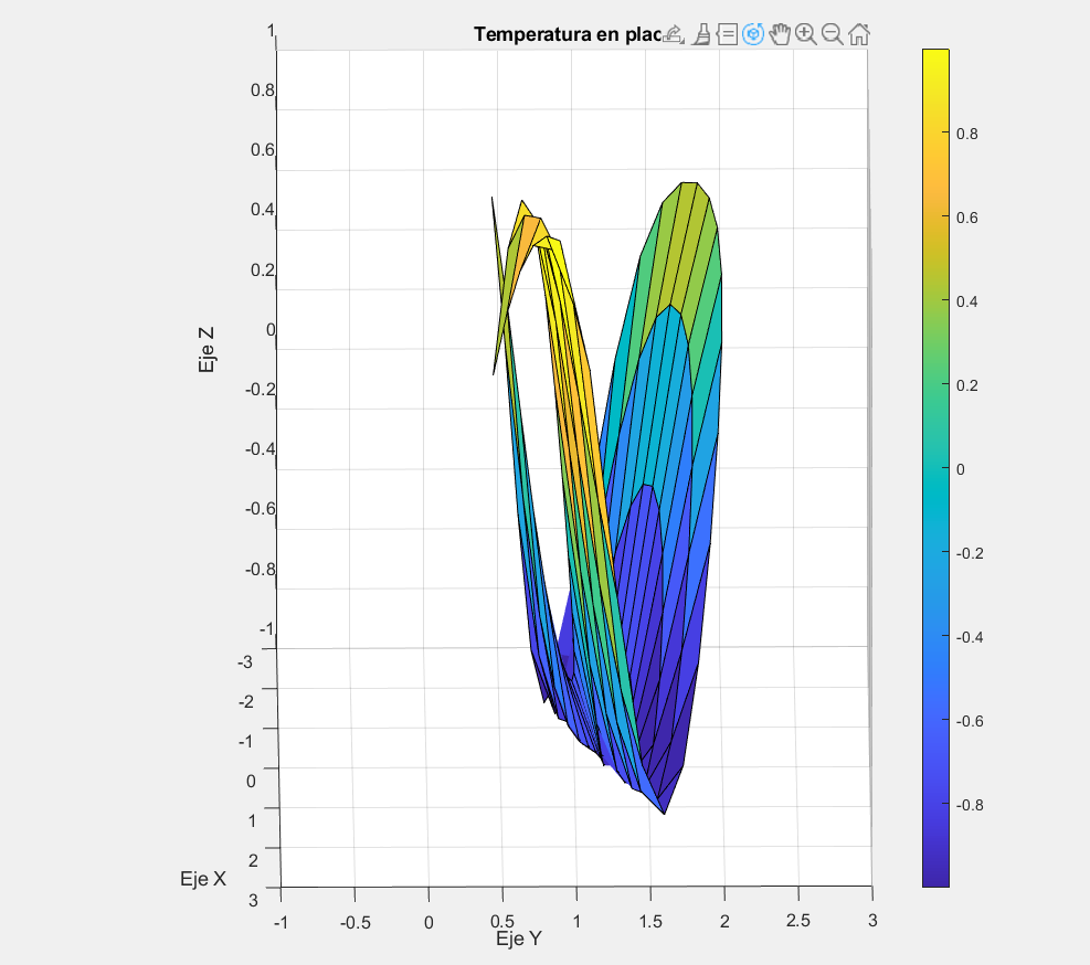 Para finalizar este tema se calcular la energía calorífica mediante la ley de Fournier, donde k=1 y que se podrá apreciar en la Figura 4. En este caso, Q es la transferencia de energía en forma de calor y k la constante de conductividad térmica del material del cual está hecha la placa.