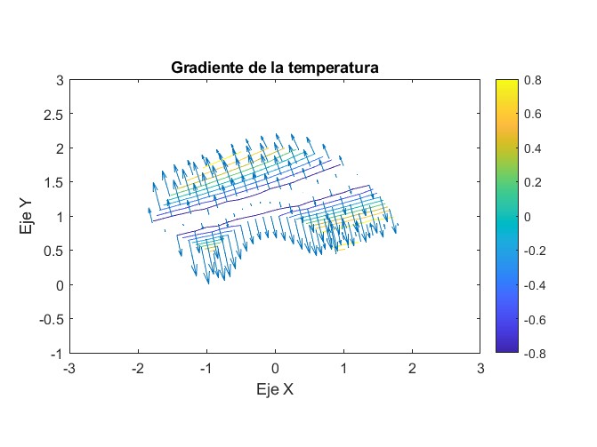 Después de se procederá a calcular el gradiente del campo de temperaturas ([math]\nabla T [/math]) ,es decir, un campo vectorial que se podrá ver en la Figura 3