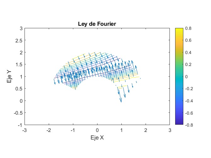 %Definimos la Ley de Fourier donde la energia calorifica es Q=-k∇T