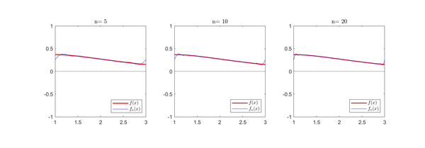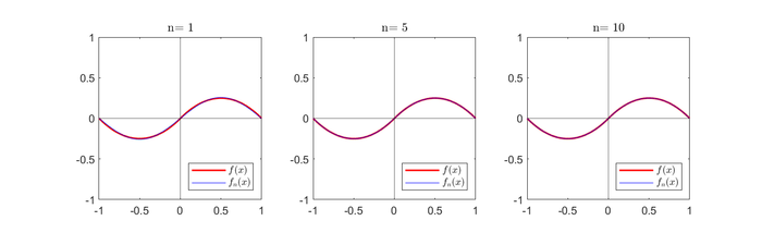 legend({'$f(x)$','$f_{n}(x)$'},'Interpreter','latex','Location','northwest')