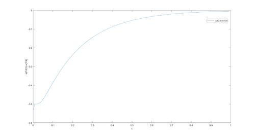 Continuando con la idea de representar la solución de la ecuación del calor se impondrá una serie de condiciones sobre el sistema para ver como se comporta la solución, dichas condiciones serán; la condición inicial [math] u(x, 0) = 0 [/math] y la condición frontera [math]u(0, t) = 1 [/math].