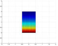 El campo de temperaturas, es un campo escalar que depende de dos variables espaciales (x,y) y el tiempo (t). En nuestro caso definimos el campo de temperaturas como [math]T(x,y)=e^{-y}[/math] con t=0 por lo tanto depende únicamente de la posición de cada punto, es decir, sus coordenadas x e y.