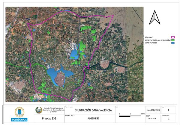 Este trabajo tiene como objetivo analizar las consecuencias de la DANA (Depresión Aislada en Niveles Altos) que el 29 de octubre de 2024 impactó con especial dureza en el municipio de Algemesí, en la provincia de Valencia. Este fenómeno extremo provocó lluvias torrenciales, inundaciones y vientos intensos, dejando a su paso al menos tres fallecidos, numerosos heridos y cuantiosos daños materiales.