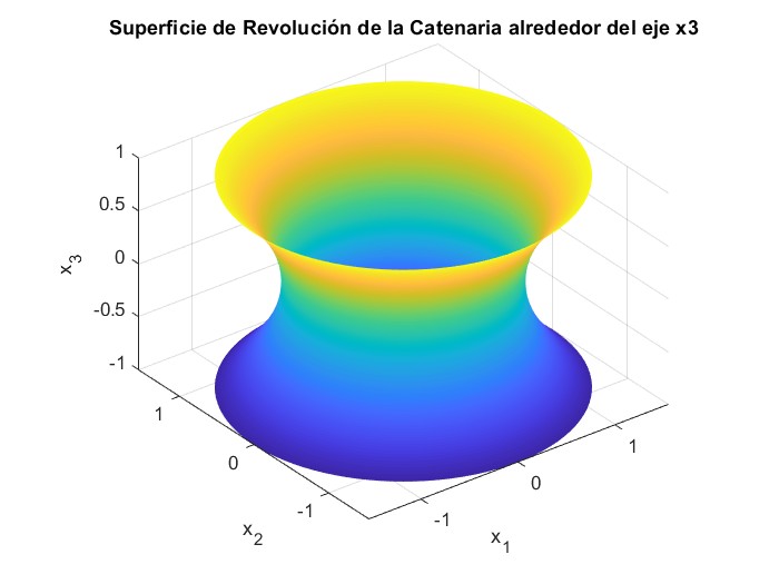 title('Superficie de Revolución de la Catenaria alrededor del eje x3');