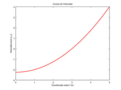 Por lo tanto, el campo de velocidad es: [math]\mathbf{u}(\rho, \theta, z) = \frac{\rho^2 - 9}{4} \mathbf{e}_z.[/math]