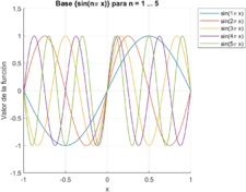 La base trigonométrica es una base del espacio [math]L^2([-\pi,\pi])[/math], por lo que las funciones pertenecientes a este espacio pueden escribirse como una combinación lineal de los elementos de la base. A estas expresiones se les llama series de Fourier.