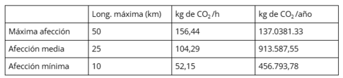 Se ha dividido la afección en tres zonas, la inmediatamente más cercana asume la totalidad de las emisiones, la intermedia el 66% y la más extensa el 33%.