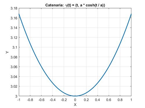 title('Catenaria: \gamma(t) = (t, a * cosh(t / a))');