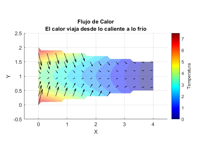 Se dibujan las curvas de nivel de la temperatura y decidir en qué punto la temperatura es máxima. Se calcula el gradiente de la temperatura y se representa en la gráfica.