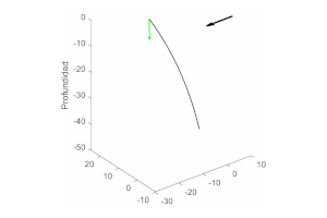 quiver3(10, 0, -1, -12, 0, 0, 'k', 'LineWidth', 2, 'MaxHeadSize',0.751) % Vector del viento