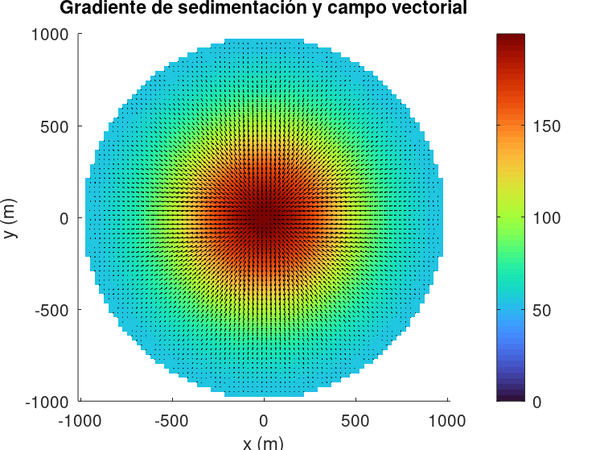 | + | title("Gradiente de sedimentación y campo vectorial"); | ||