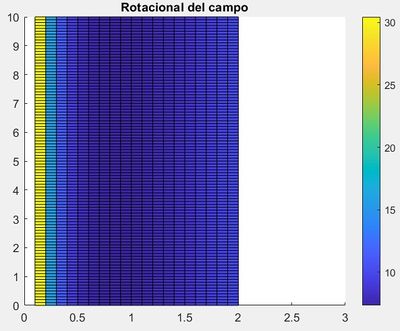 Como hemos hallado anteriormente, la divergencia de [math]\overrightarrow{u}[/math] es nula. Consequentemente, el rotacional del campo [math]\overrightarrow{v}[/math] es nulo también.