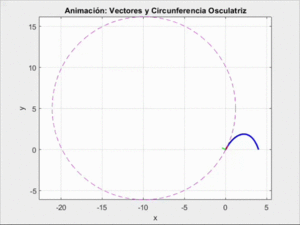 title('Animación: Vectores y Circunferencia Osculatriz');