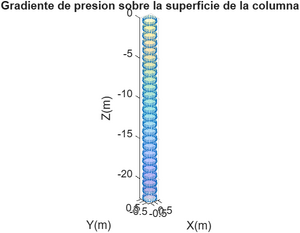 Una vez definido el campo escalar [math]P(z)[/math] y la superficie cilíndrica, se utiliza un mapa de colores para representar visualmente la presión: