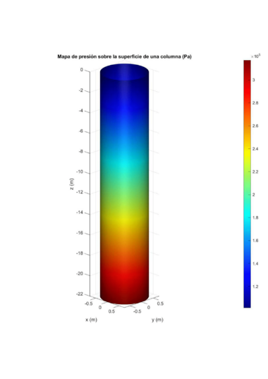 - 2 Representación de el campo de presión como un mapa de colores sobre la superficie de una columna