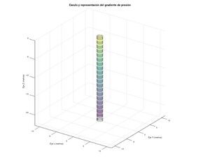 Por lo que sabemos que nuestro campo tiene una independencia horizontal donde todos los puntos situados a la misma profundidad experimentan una idéntica presión, posee una variación lineal donde la presión aumenta linealmente con la profundidad y una distribución cilíndrica con columnas de radio [math]r_c = 0{,}75 m[/math], donde cada anillo horizontal presenta una presión uniforme.