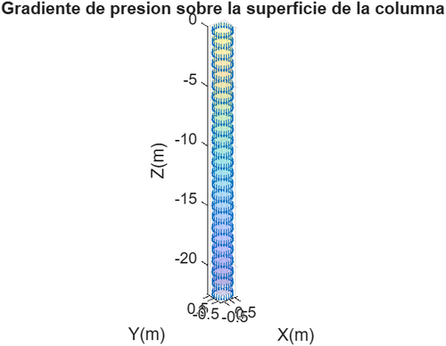 title('Gradiente de presion sobre la superficie de la columna');