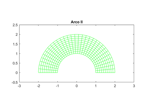 Para poder trabajar numéricamente sobre el arco es necesario discretizarlo, es decir, construir una malla de puntos en su interior. Partimos de la descripción del dominio en coordenadas polares: