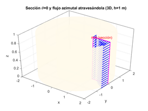 title(sprintf('Sección \\theta=0 y flujo azimutal atravesándola (Q = %.3f m^3/s)', Q));